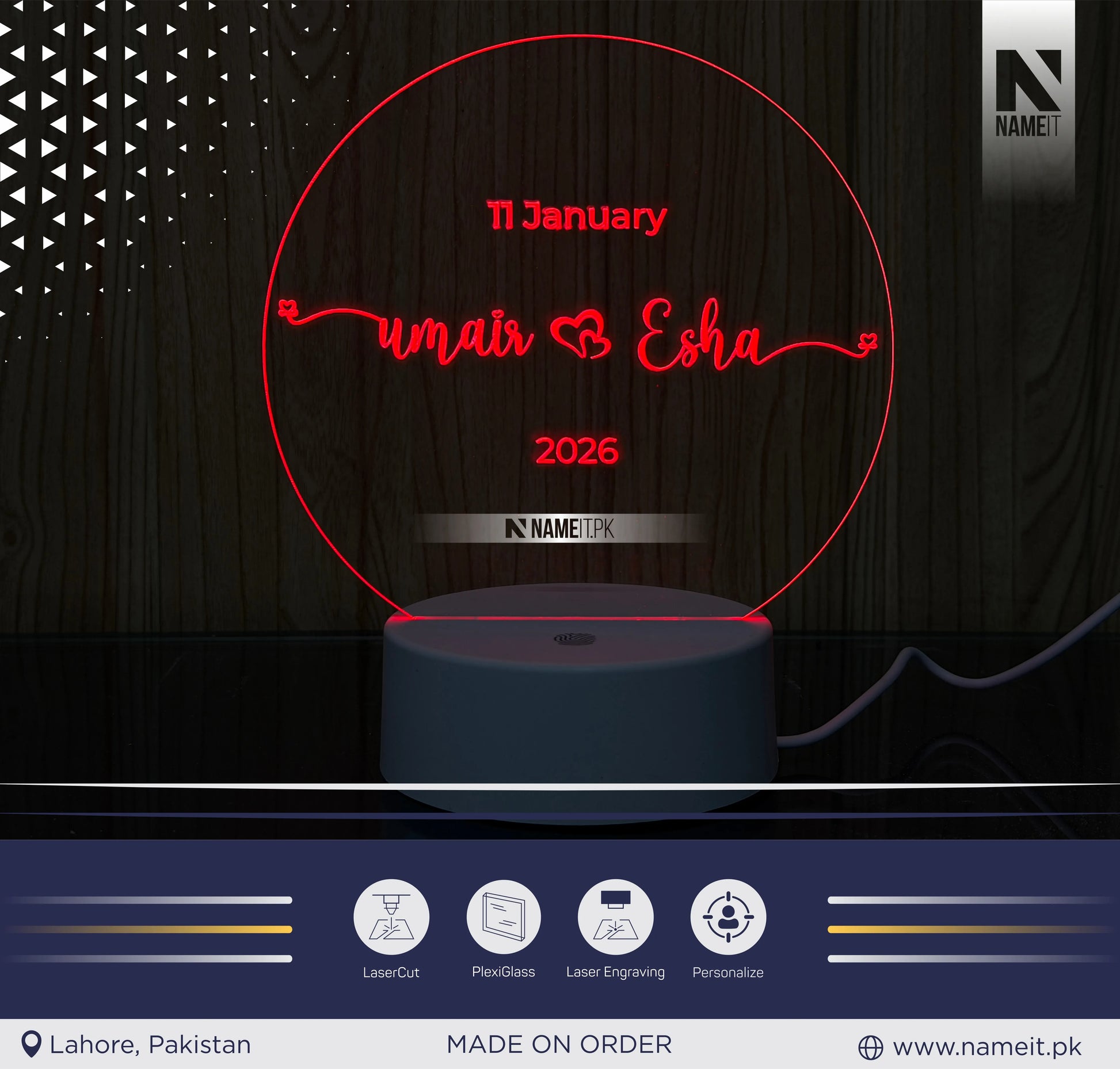 Custom 3D LED Night Light with Two Names Lovers, Wedding Desk Lamp, Anniversary Gift, Birthday Gifts, Bedroom Lamp, Sleep light, SURPRISE