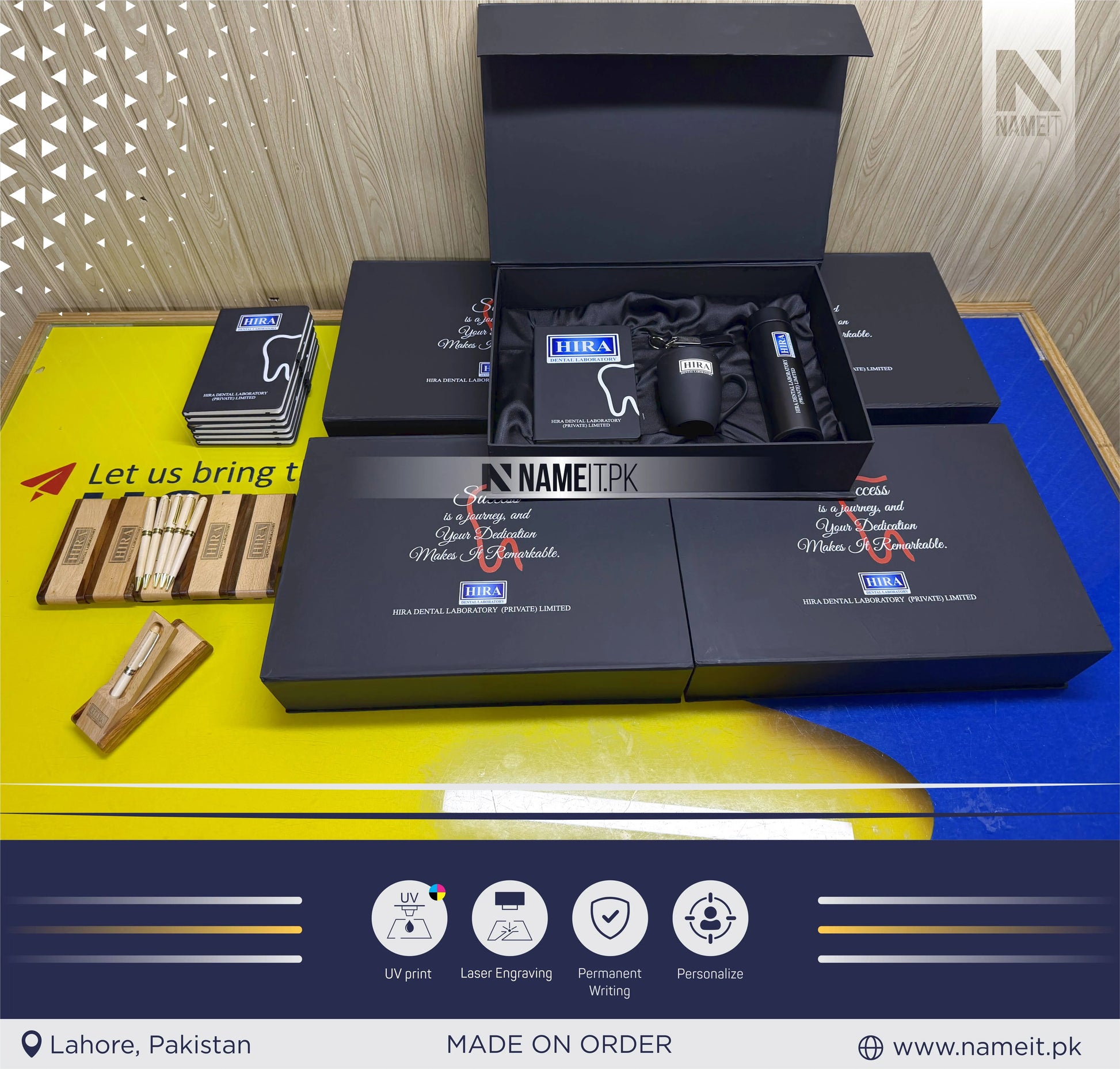 Giveaway Box, Custom Business Logo Gift Set – Personalized Corporate Journal, Coffee Mug & Keyring, Water Bottle in Premium Gift Box | Wooden Pen Set, Employee Client Company Gifts