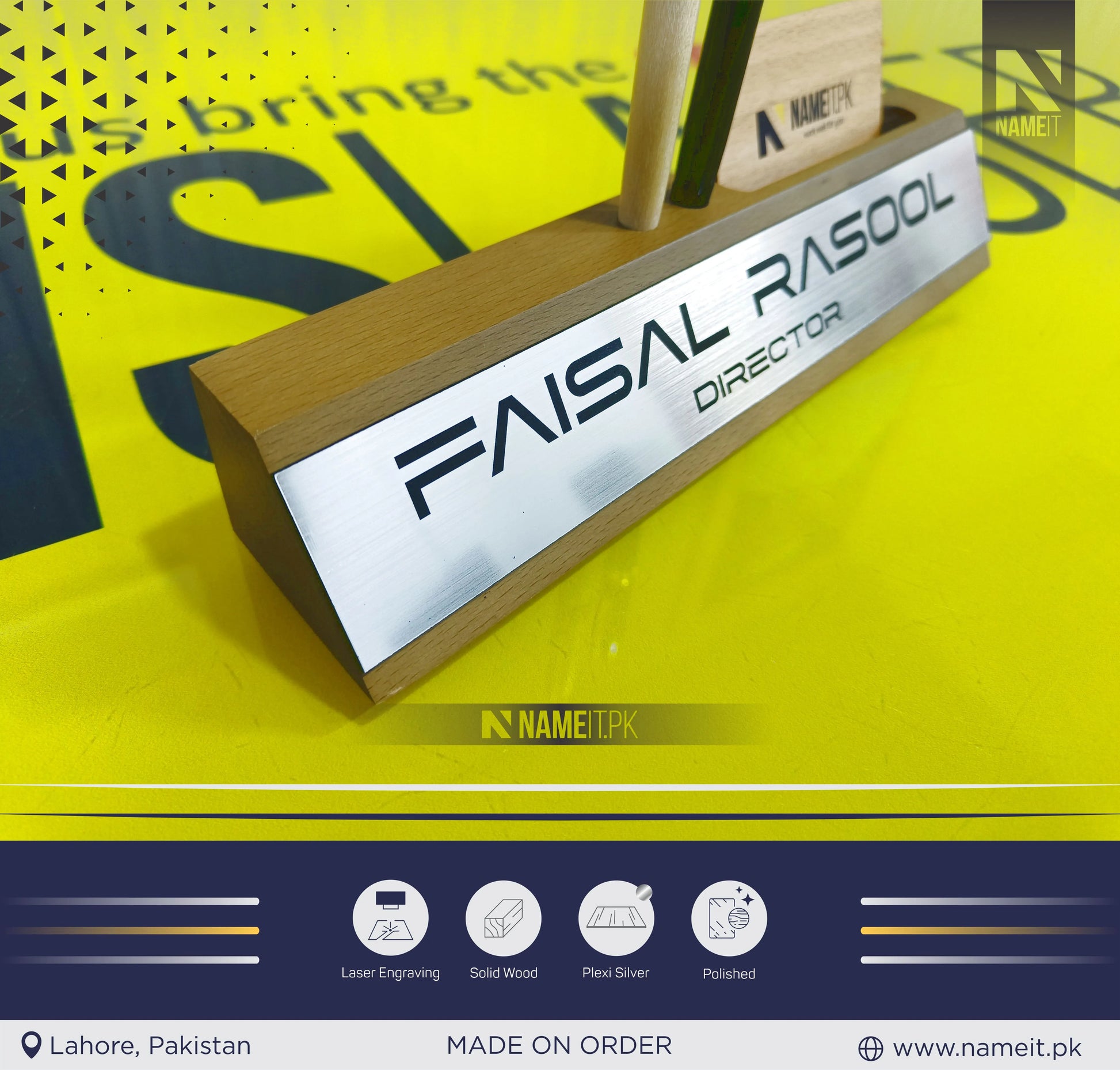- Base of solid wood for name and position ( or any other text),
