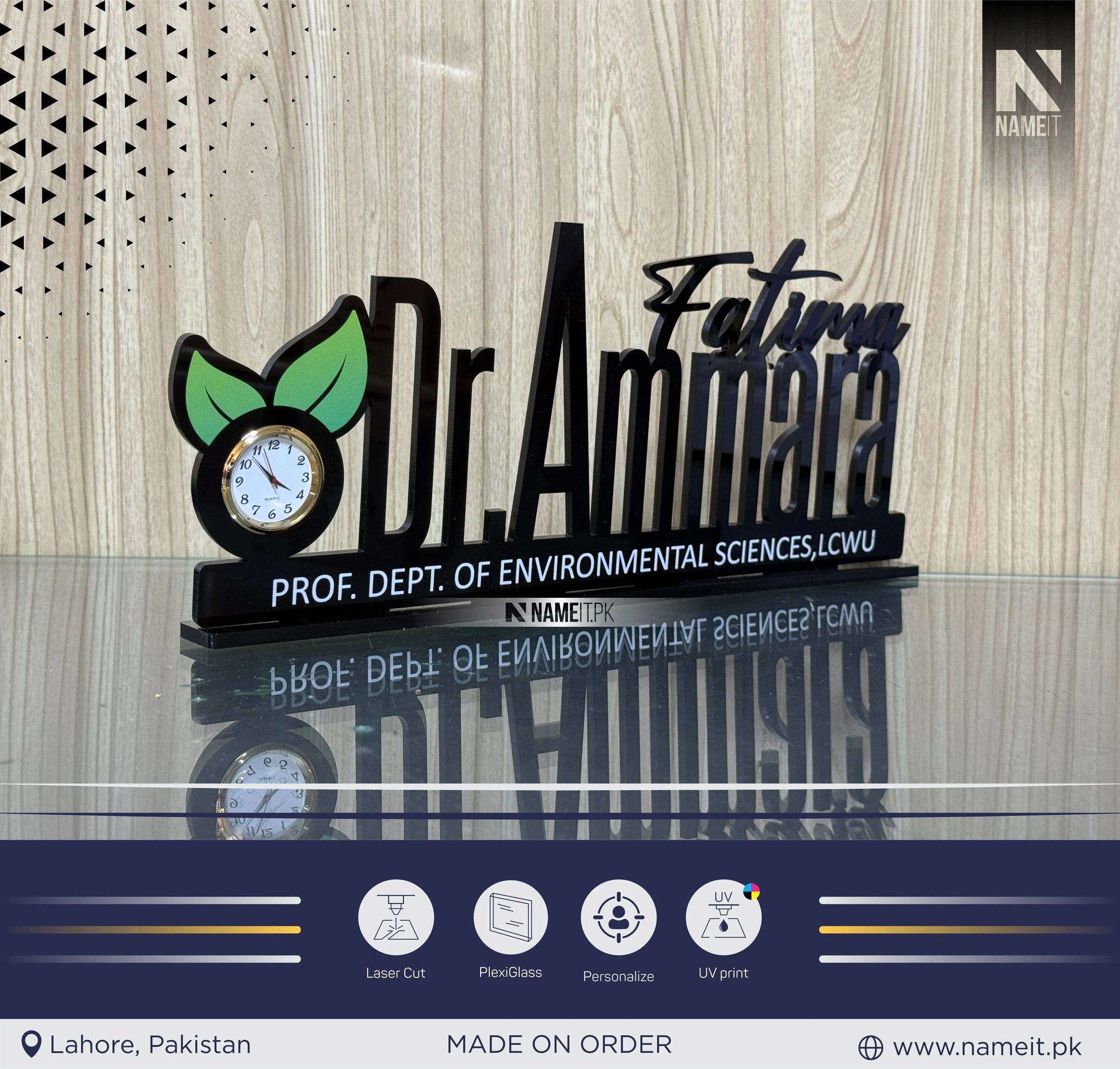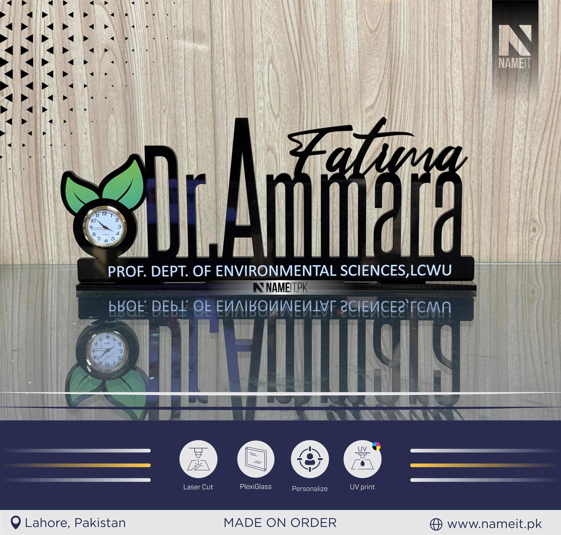 Elevate your professional workspace with this Personalized Acrylic Table Name Plate with Clock – a perfect blend of style, function, and customization. Crafted from high-quality black acrylic, this sleek desk nameplate features your custom name alongside a functional clock, making it an ideal desk accessory for any office or business setting.Designed to make a lasting impression, this custom nameplate with clock is perfect for: